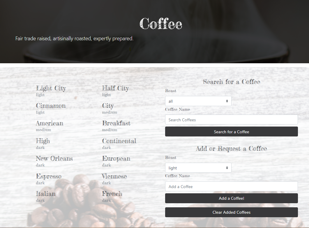 This is a pairs-programmed vanilla Javascript app that has a ton of functionality and even allows the user to add to the database and display. It's lovingly hand-coded with HTML, CSS, Bootstrap, and even touches a bit of LocalStorage and file permanence.