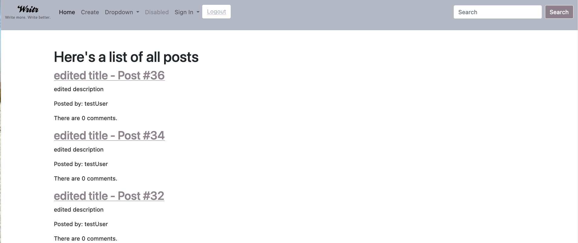 This is a fully responsive, fully interactive, mobile responsive full stack application. It implements Spring Security and allows users to login and create blog posts, or edit their own blog posts, and for anyone to view a user's blog posts.