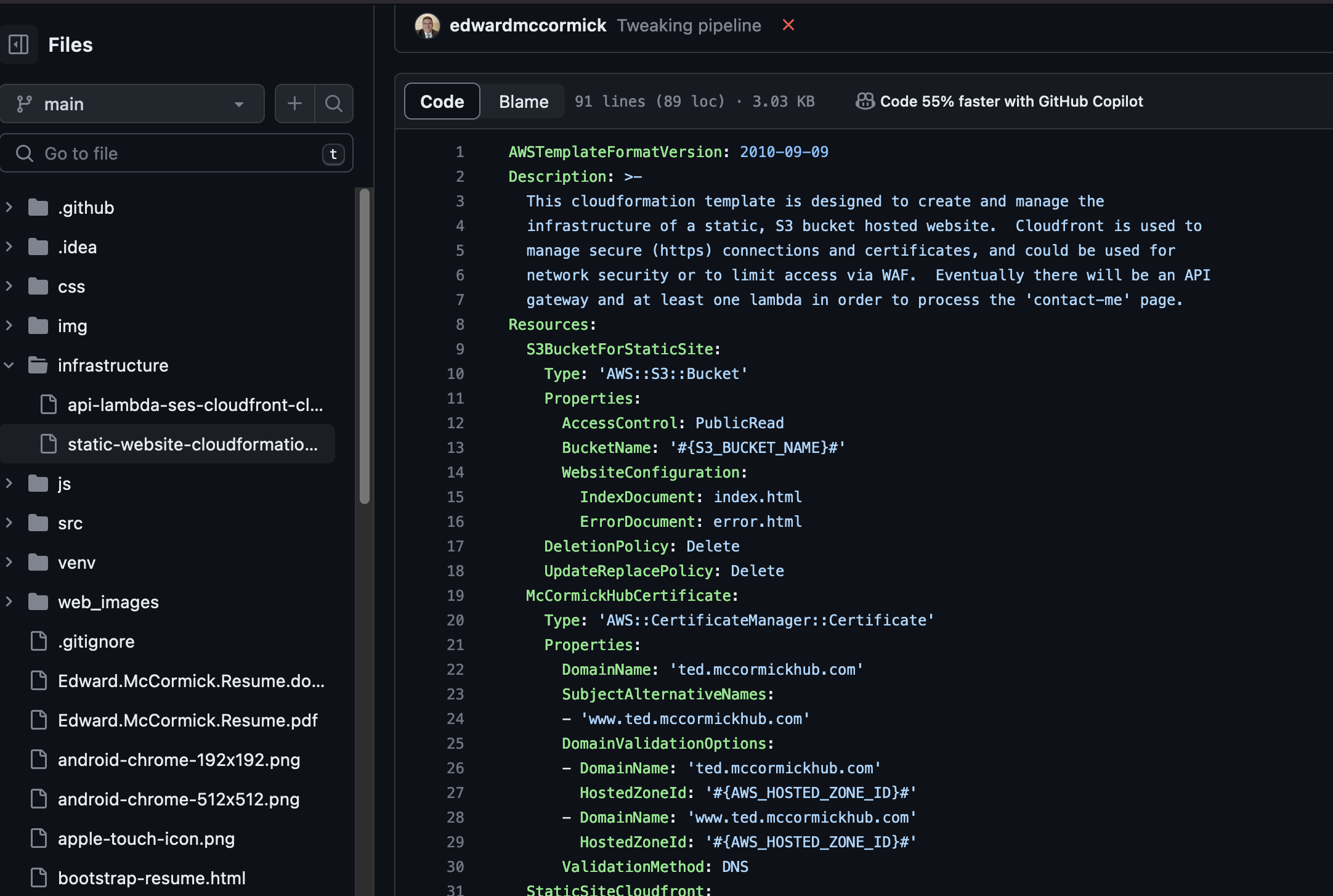 I was a little rusty when I pulled this thing out of the depths of my GitHub repositorites, but over the course of a month or three (while also working full time and passing the AWS Cloud Developer Associate), I converted from Bootstrap to TailwindCSS, switched from jQuery to AlpineJS, re-engineered this into a cloud native/S3 bucket hosted app, and integrated an API Gateway with Lambda for 'contact me' functionality. And built a CI/CD pipeline in GitHub Actions, without any prior experience there. Up next - blue/green deployments.